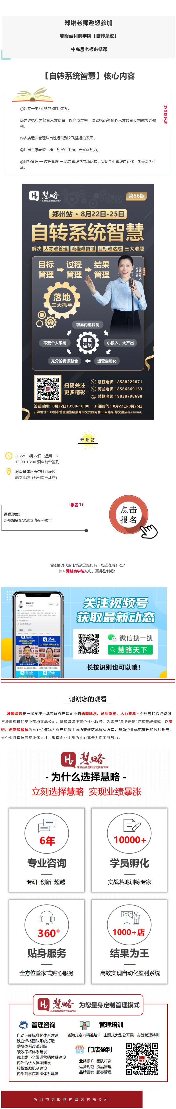 慧略在線顧問(wèn)工(gōng)作(z→∑uò)時(shí)間(jiān):早上(shàn∞g)9:00至晚上(shàng)6:00。我們為(wèi≈<)您提供珠寶品牌連鎖企業(yè)管理(lǐ)咨詢與管理(lǐα∞)培訓的(de)信息。