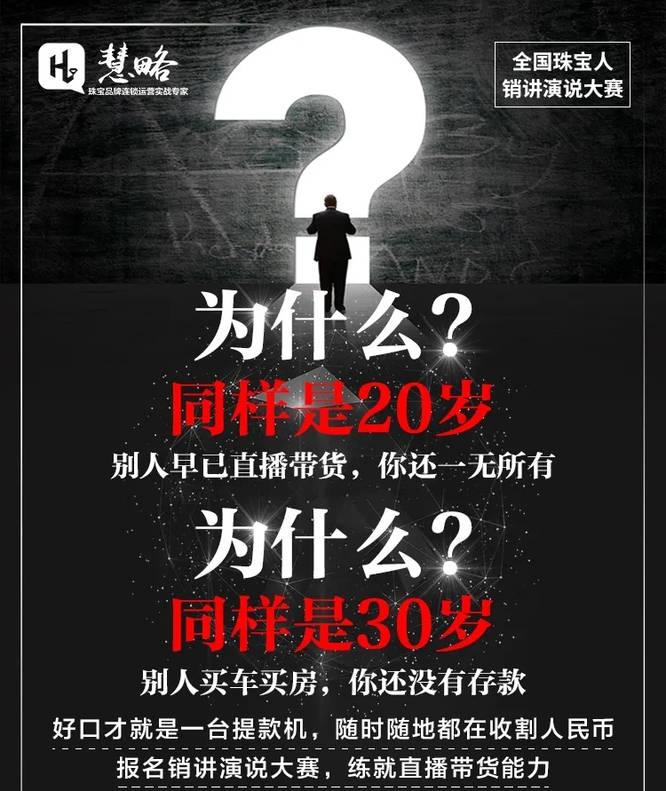 《全國(guó)珠寶人(rén)銷講演說(shuō)大(d★à)賽》從(cóng)敢講到(dào)能(néng)講,從(cóng)™•π能(néng)講到(dào)會(huì)講分(fēn)成了(l∞ "±e)9個(gè)階段,1.0階段的(de)2分(fēn)鐘(zhōn∏↔€g)狀态打開(kāi),2.0階段的(de)銷講架構搭建,3.0←φ✔£版本的(de)直播思維構建,每一(yī)個(gè)主×≥>題,每一(yī)個(gè)字句都(dōu)是(shì)慧略的(de¶→)老(lǎo)師(shī)們用(yòng)自(zì)己多(duō)年(nπián)的(de)職場(chǎng)行(xín•÷γg)業(yè)經驗仔細推敲出來(lái)的(d♣αe),每一(yī)字句背後都(dōu)有(yǒu)慧略老(lǎo)師(shī'≤☆§)賦予的(de)含義。沒有(yǒu)“我一(yī)定要(yào$♠↔)改變,我一(yī)定要(yào)改變,我一(yī)定要(yào)改變•® ≈”的(de)決心呐喊,就(jiù)不(bù)會(huì)有(y∞φ∑ǒu)後面“一(yī)上(shàng)台,我就(jiù)變超人(rén)”的(≠♣±₹de)改變!