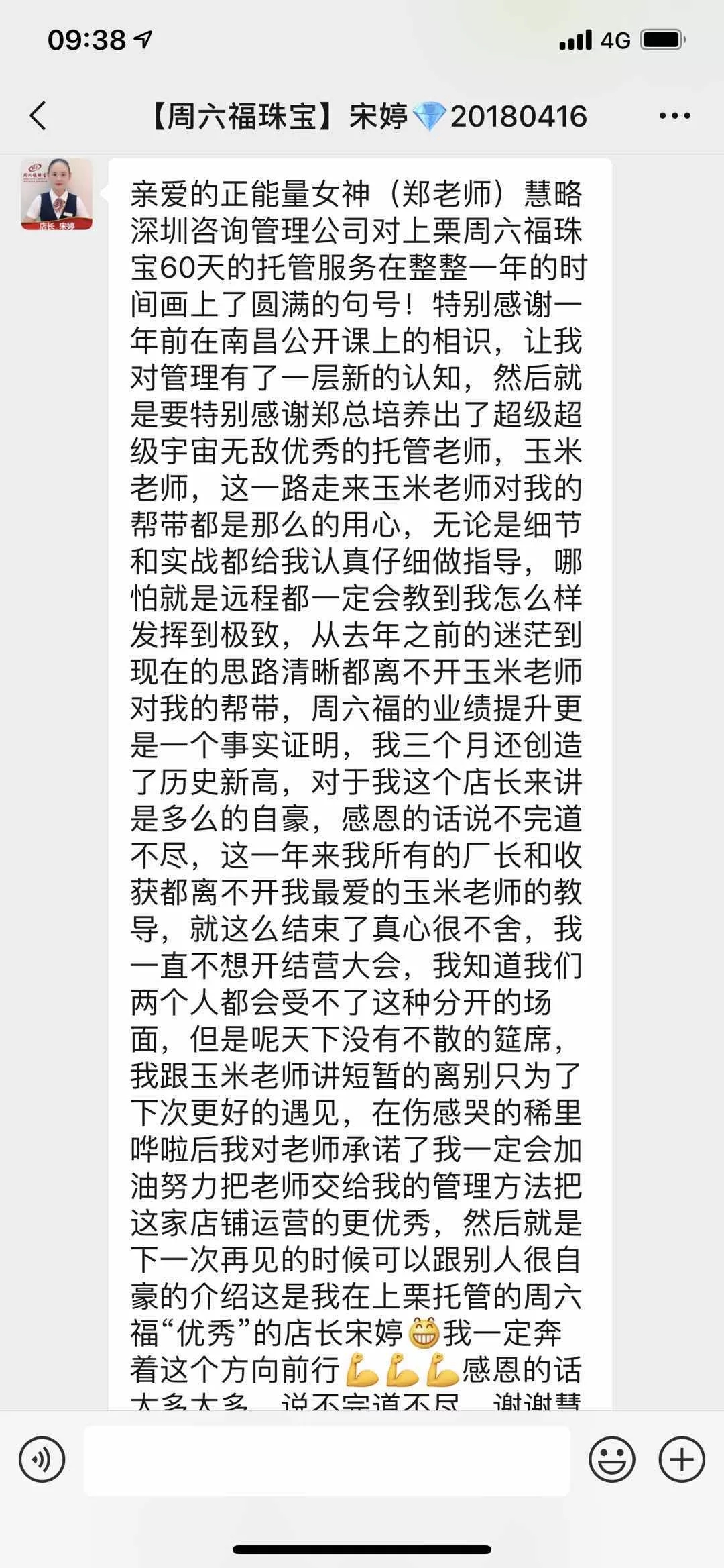 △江西(xī)周六福珠寶顧問(wèn)劉輝表達對(duì)慧略與←李老(lǎo)師(shī)的(de)感謝(xiè)△